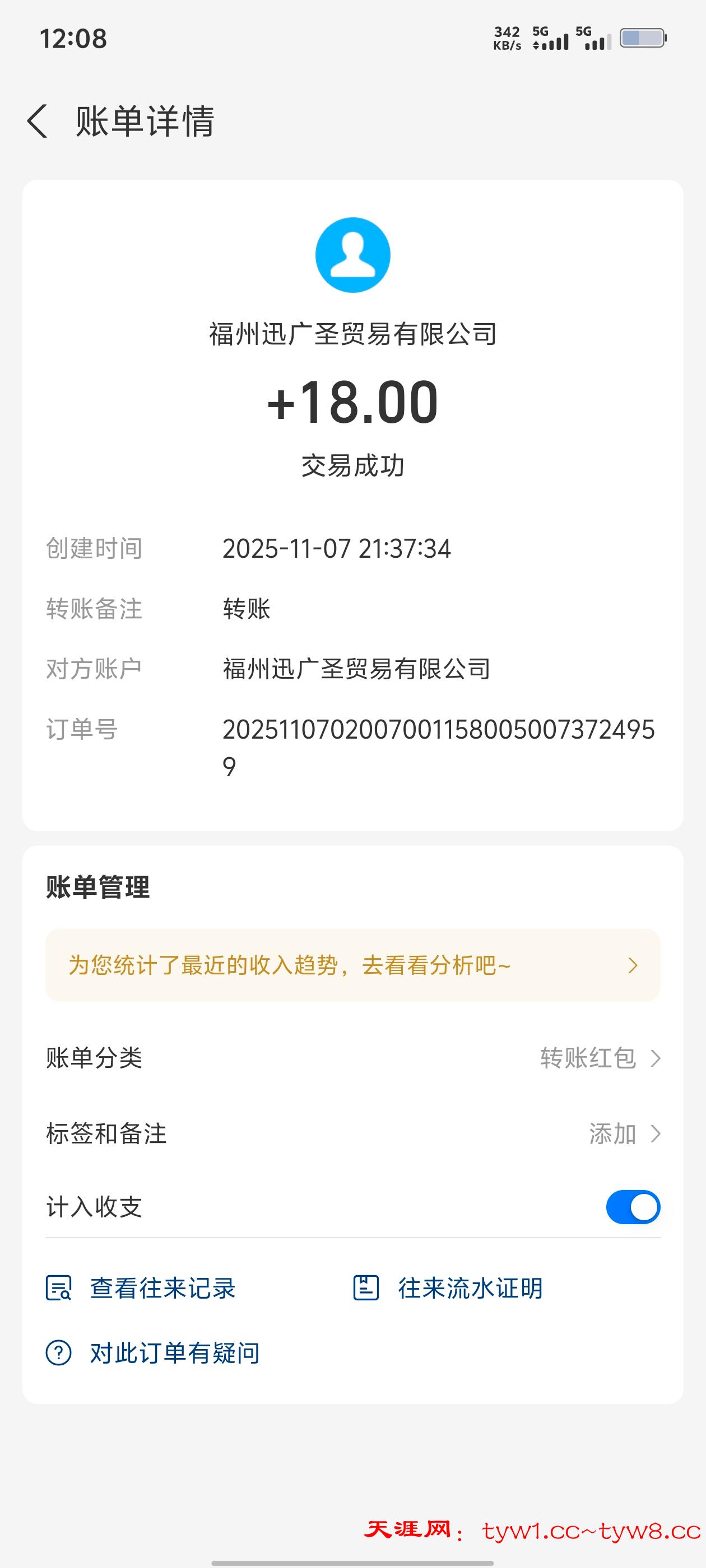 到账了