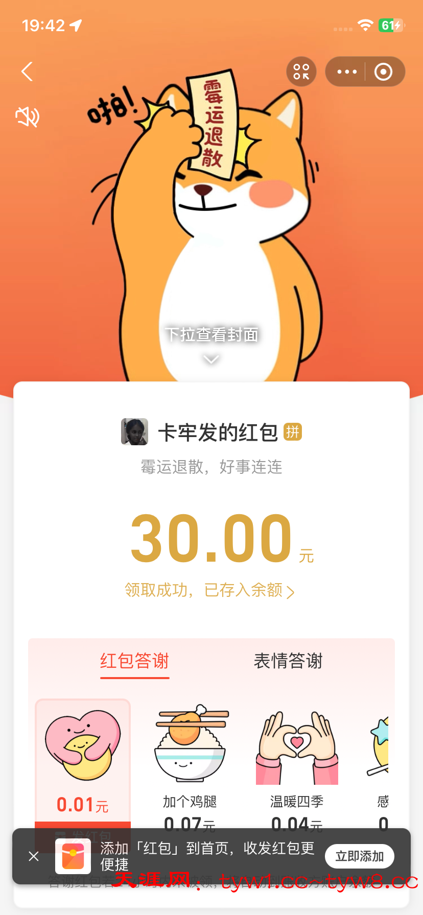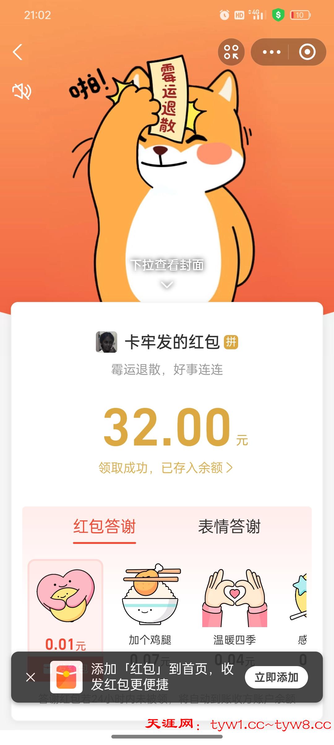 抽奖到账感谢