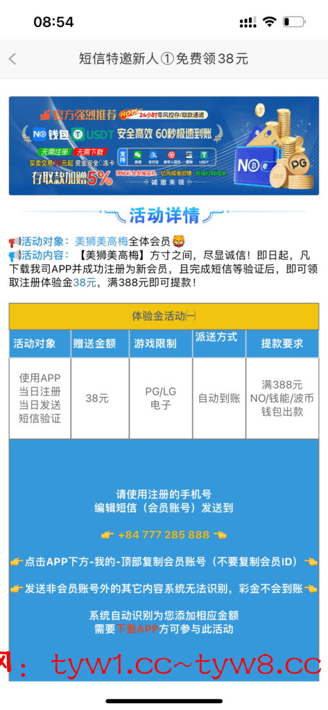 用绑定的手机号发短信领38彩金